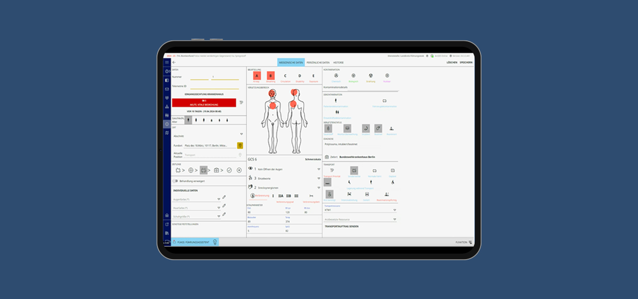 Sind bei einer Schadenslage auch Menschen betroffen, bietet das Betroffenenmanagement eine optimale Grundlage für die Organisation von verletzten und betroffenen Personen. Mit dem Betroffenenmanagement können Sie die Patientensichtung mithilfe eines Sichtungs-Wizards durchführen, persönliche und medizinische Daten der Betroffenen erfassen, das Transportmanagement von Patienten organisieren und die Behandlungskapazitäten von Krankenhäusern und Notunterkünften darstellen.